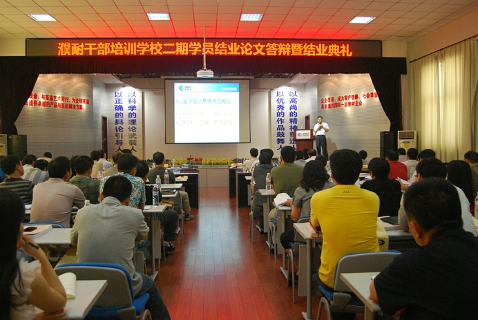 在結(jié)業(yè)典禮上,技術(shù)中心劉國濤、海外營銷部王嵬峰等八名學(xué)員分別作了論文答辯,劉百寬等公司領(lǐng)導(dǎo)均為評委,對學(xué)員的答辯進行評價。公司總裁李學(xué)軍宣讀了結(jié)業(yè)學(xué)員名單。副董事長卞楊林為二期干校學(xué)員現(xiàn)任干部代表劉連兵,后備干部代表多志軍頒發(fā)結(jié)業(yè)證書并為候彩良、張文等10名優(yōu)秀學(xué)員頒發(fā)證書。